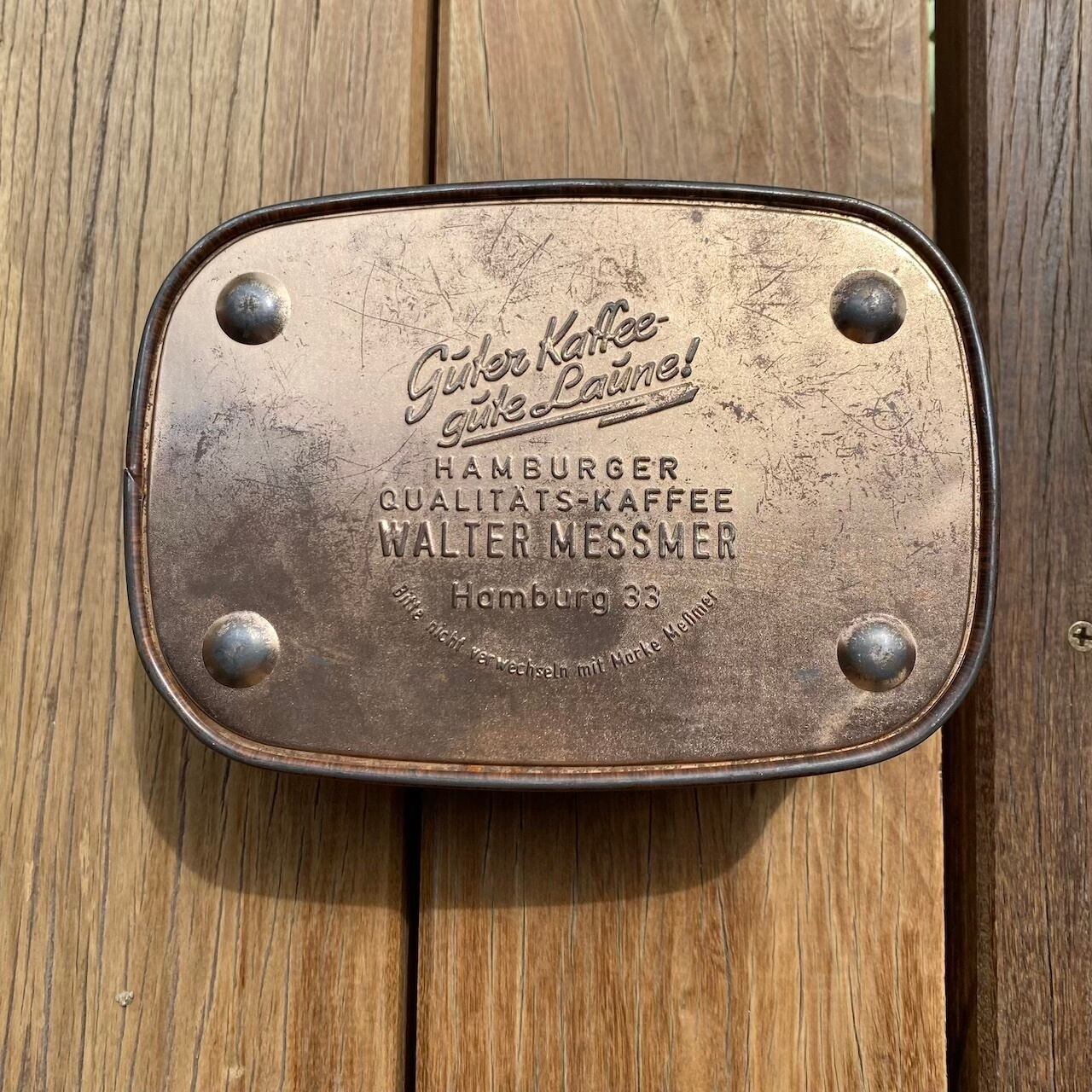 ドイツの蚤の市で見つけた、クールな雰囲気のコーヒー缶です。
