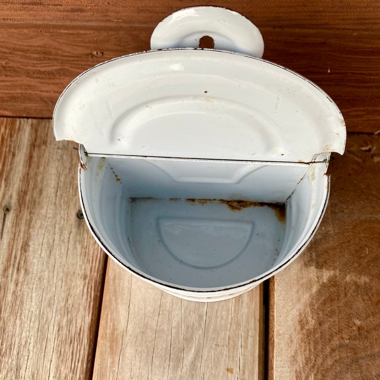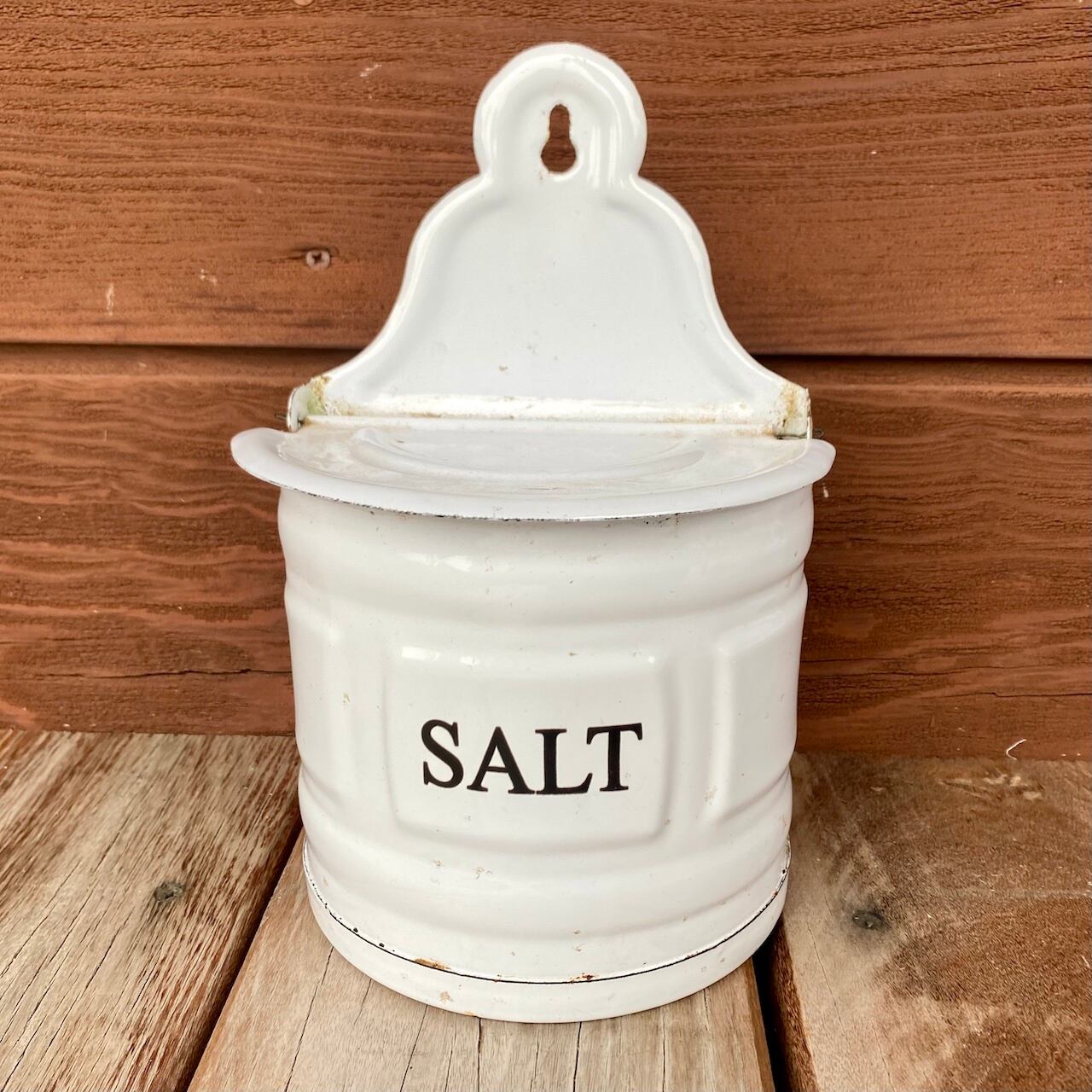 ヨーロッパのアンティークのホーロー壁掛けSALT缶です。